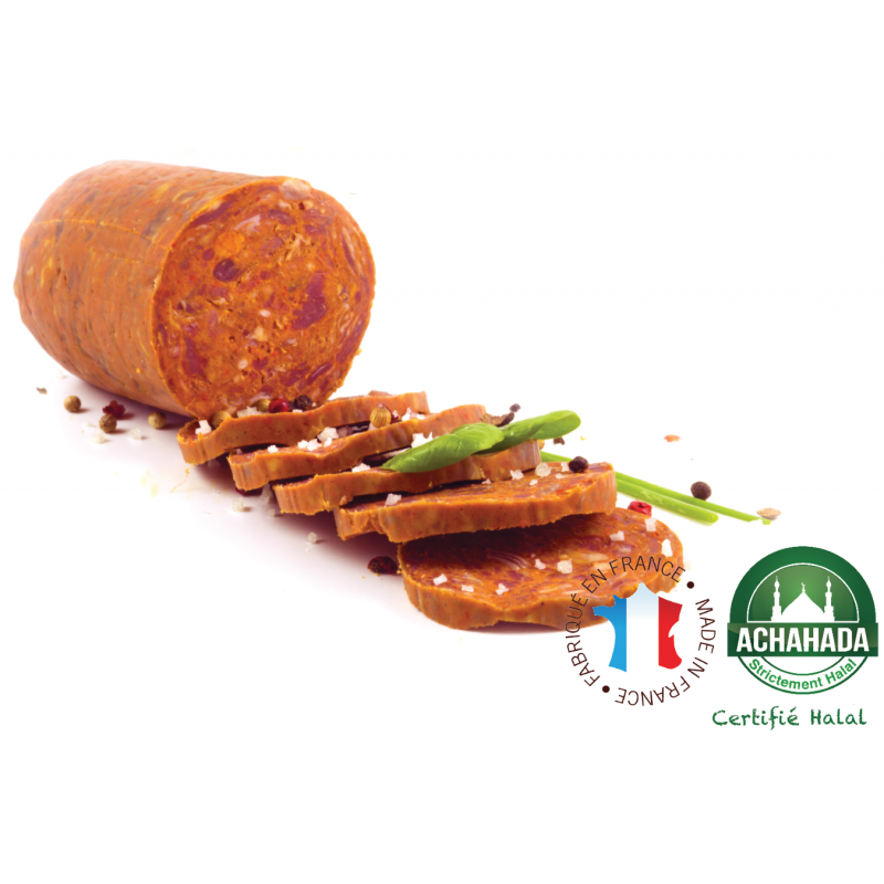 viandes de boeuf (88%), épices, dextrose, sirop de glucose, stabilisants : diphosphate, saccharose, sel, arômes, antioxydant : ascorbate de sodium, érythorbate de sodium, fibre végétale, acidifiant : lactate de potassium, sel de Guérande (0,6%) conservateur : sel nitrité.