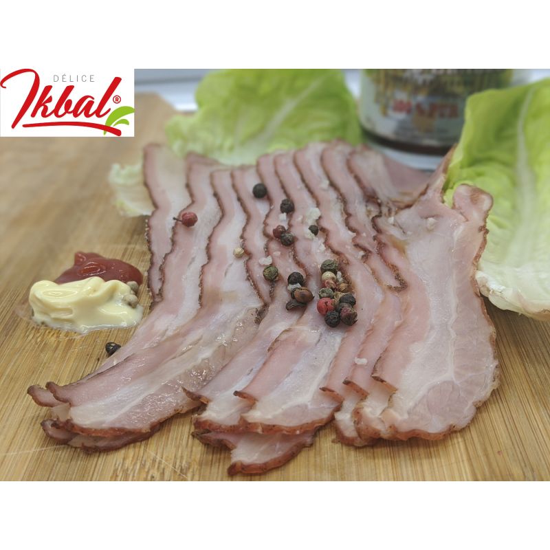 conservateur : sel nitrité, sel de guérande (0,4%), sirop de glucose, lactose, arômes de fumée,